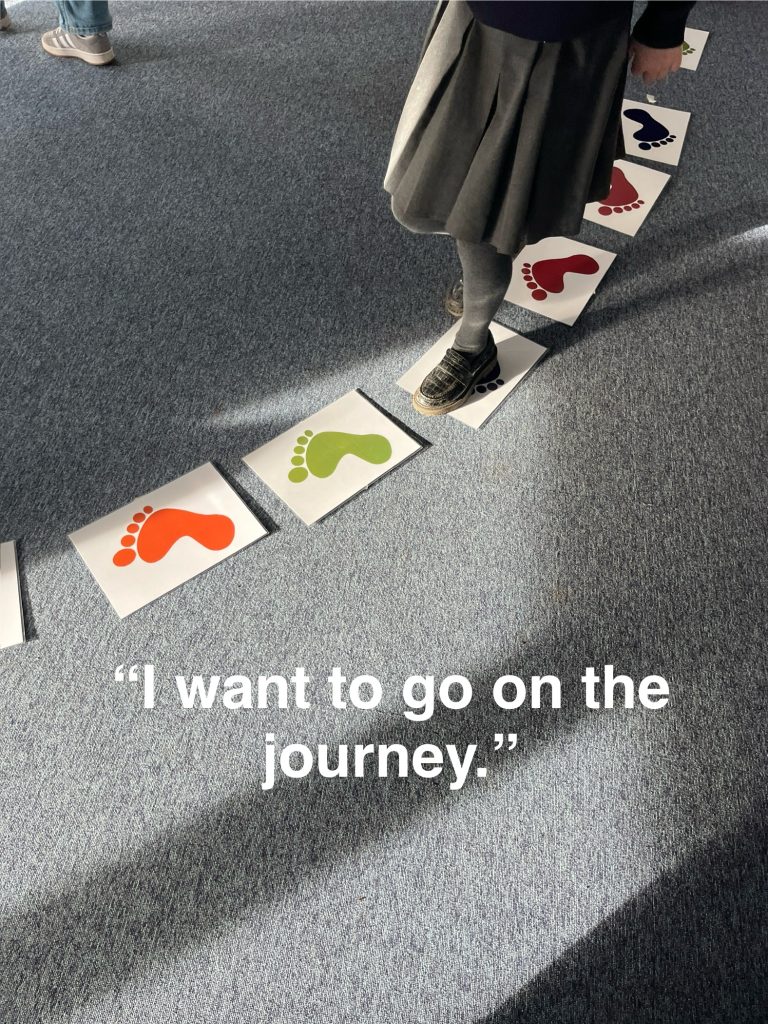 Another popular play-style activity was a set of footprints we placed around the room. The pupils were encouraged to go on a journey from one footprint to the other, thinking about the journey to Bethlehem. A physical activity like this was really engaging for some of the pupils and it was brilliant to hear them shouting, “I want to go on a journey too.”