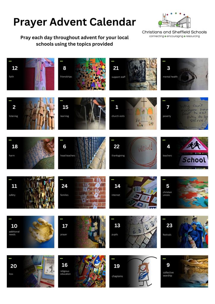 Fiona ran a prayer space last week to encourage people to pray for their local schools and they launched their own Advent Prayer Calendar! We loved this idea so much we had to share.