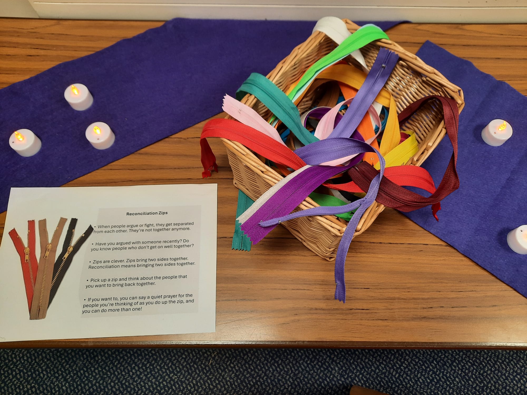 This activity invites pupils to think about their own relationships, or their friends or family, or even something that they are aware of around the world, where people have become separated. And then it asks them to pray for reconciliation, for relationships to be restored, using a simple zip.